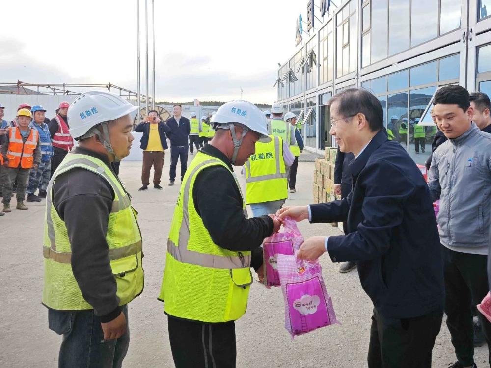 在工地現場,邵雪奎一行代表機勘院向節日期間堅守一線的全體公司職工和分包方施工人員送上中秋節慰問,感謝大家的辛勤付出,并致以節日最親切的問候和最美好的祝愿!