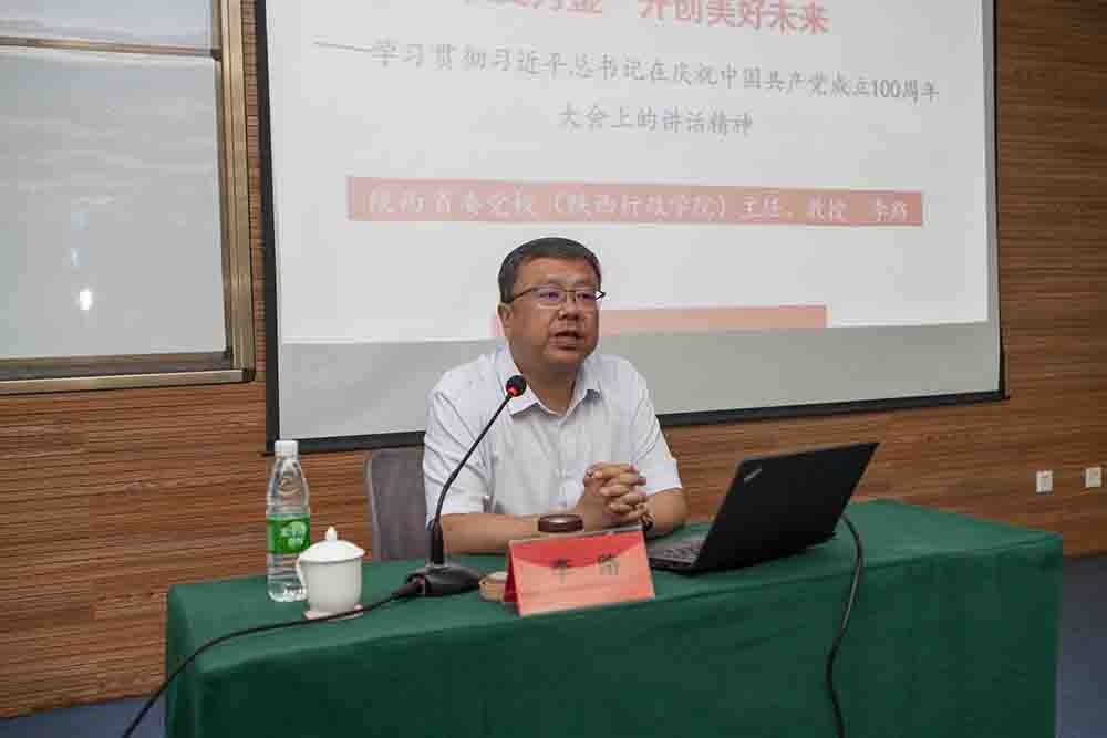 為認真學習貫徹習近平總書記在慶祝中國共產(chǎn)黨成立100 周年大會上的重要講話精神,持續(xù)推動黨史學習教育走深走實,7 月 16 日,院黨委組織召開學習貫徹習近平總書記“七一”重要講話精神專題報告會,邀請到陜西省委黨校(陜西行政學院)中國特色社會主義理論研究中心主任、黨史學習教育陜西省委宣講團成員李路教授作專題報告。院黨委書記、董事長黃玉明主持會議。