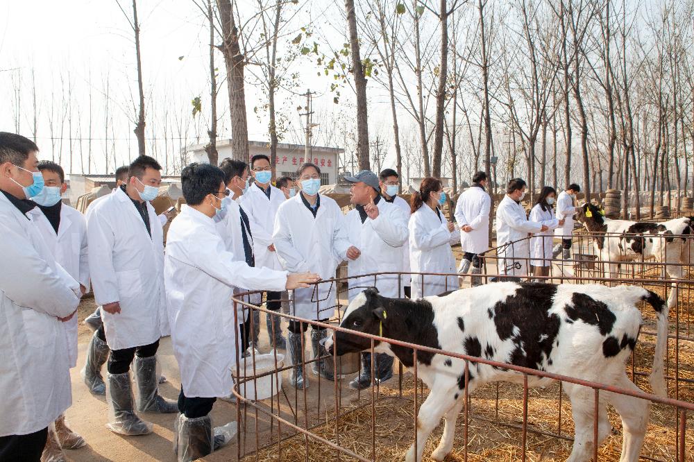 邵雪奎、楊瑞學一行在草灘集團華陰奶牛養殖基地,參觀了胚胎實驗室、擠奶廳、犢牛島、泌乳牛牛棚,實地了解草灘集團牧業發展、基地建設等方面成果,并就打造綜合性產業基地園區的規劃設想深入交換意見。