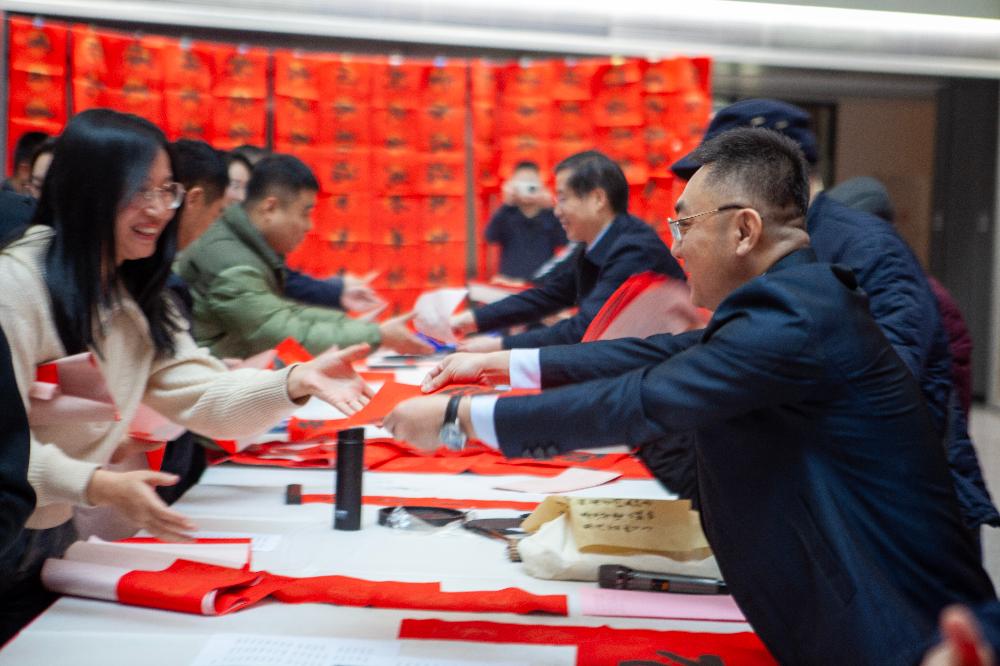 現場氣氛濃厚、熱鬧非凡,紅色春聯悉心鋪開,墨香四溢。書法愛好者們熱情高漲,在揮毫潑墨間,將新年的誠摯祝福訴諸筆端,一個個飽含神韻的“福”字、一副副滿載新春祝福的春聯精彩呈現。職工們接過一句句吉祥如意的新年賀語,既感受了中華傳統文化的魅力,又增添了對新年美好生活的憧憬和向往。活動營造了祥和溫馨的年節氛圍。