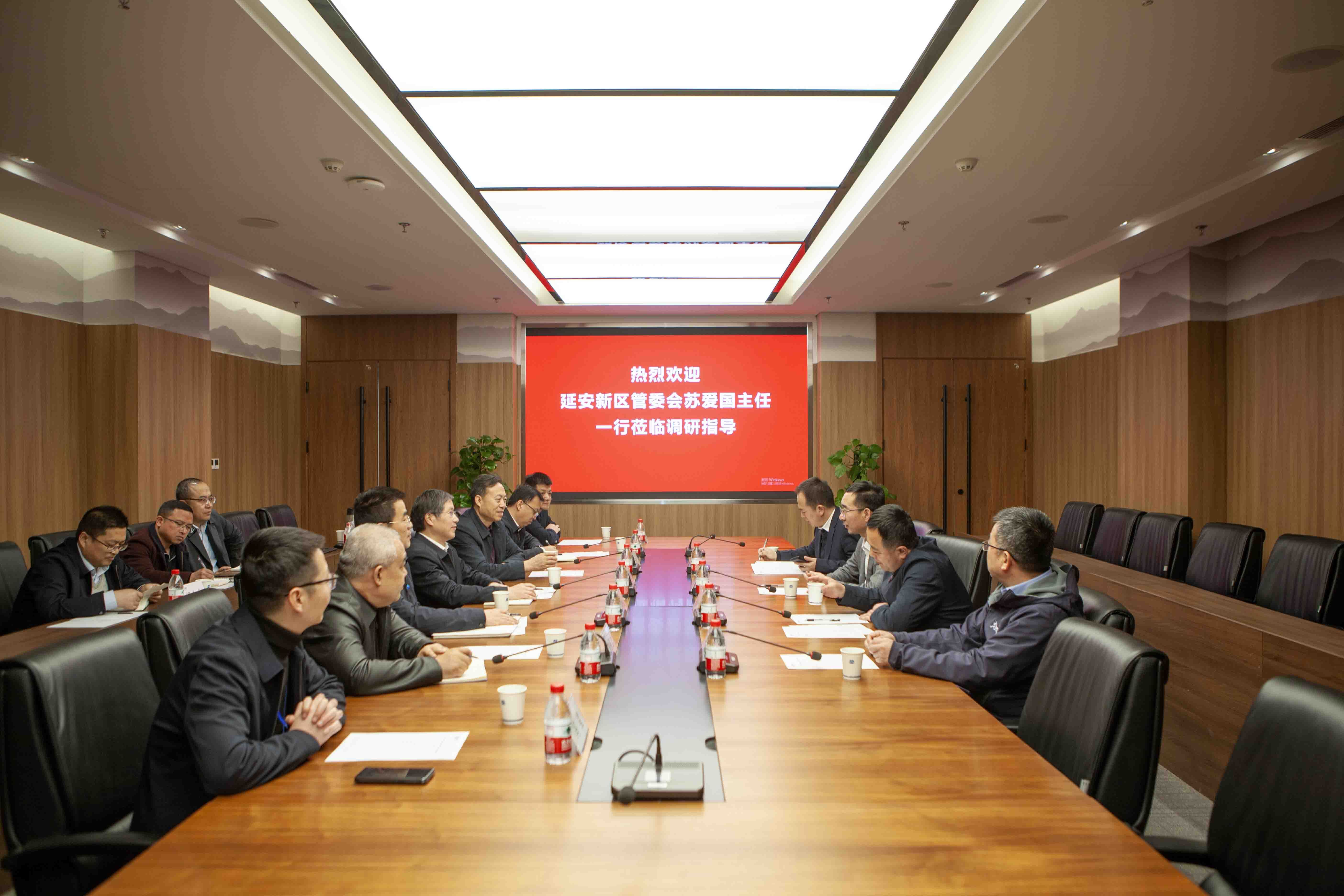 3月20日,延安市新區黨工委副書記、管委會主任蘇愛國一行到訪機勘院,機勘院黨委書記、董事長、總經理邵雪奎熱情接待。新區黨工委副書記魯尚龍、管委會副主任景輝、新投集團總經理蘇璽鈺,機勘院副總經理夏玉云、王華山參加座談交流。