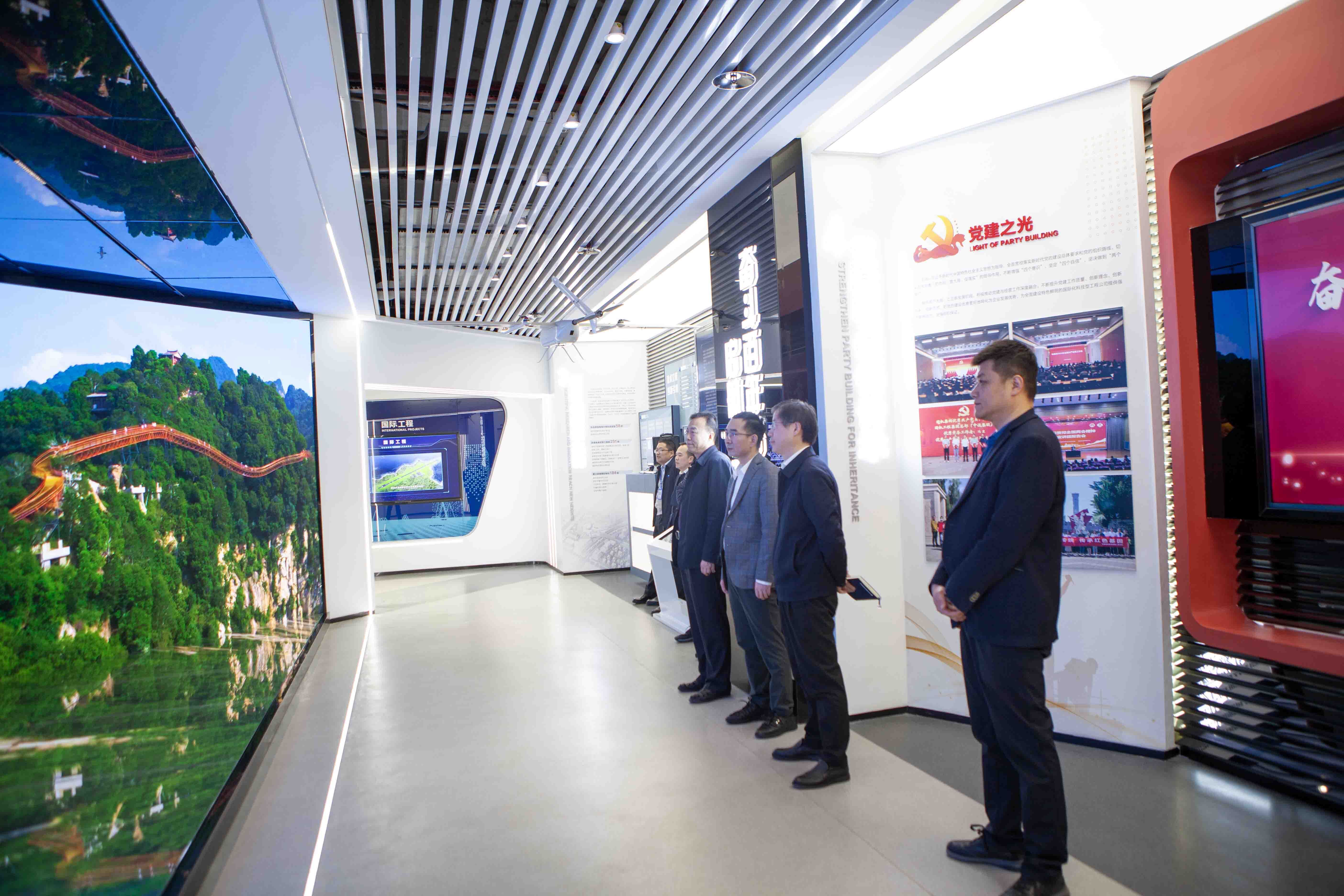 會前,新區管委會領導一行參觀企業形象展廳,觀看了機勘院特色技術產品宣傳片。