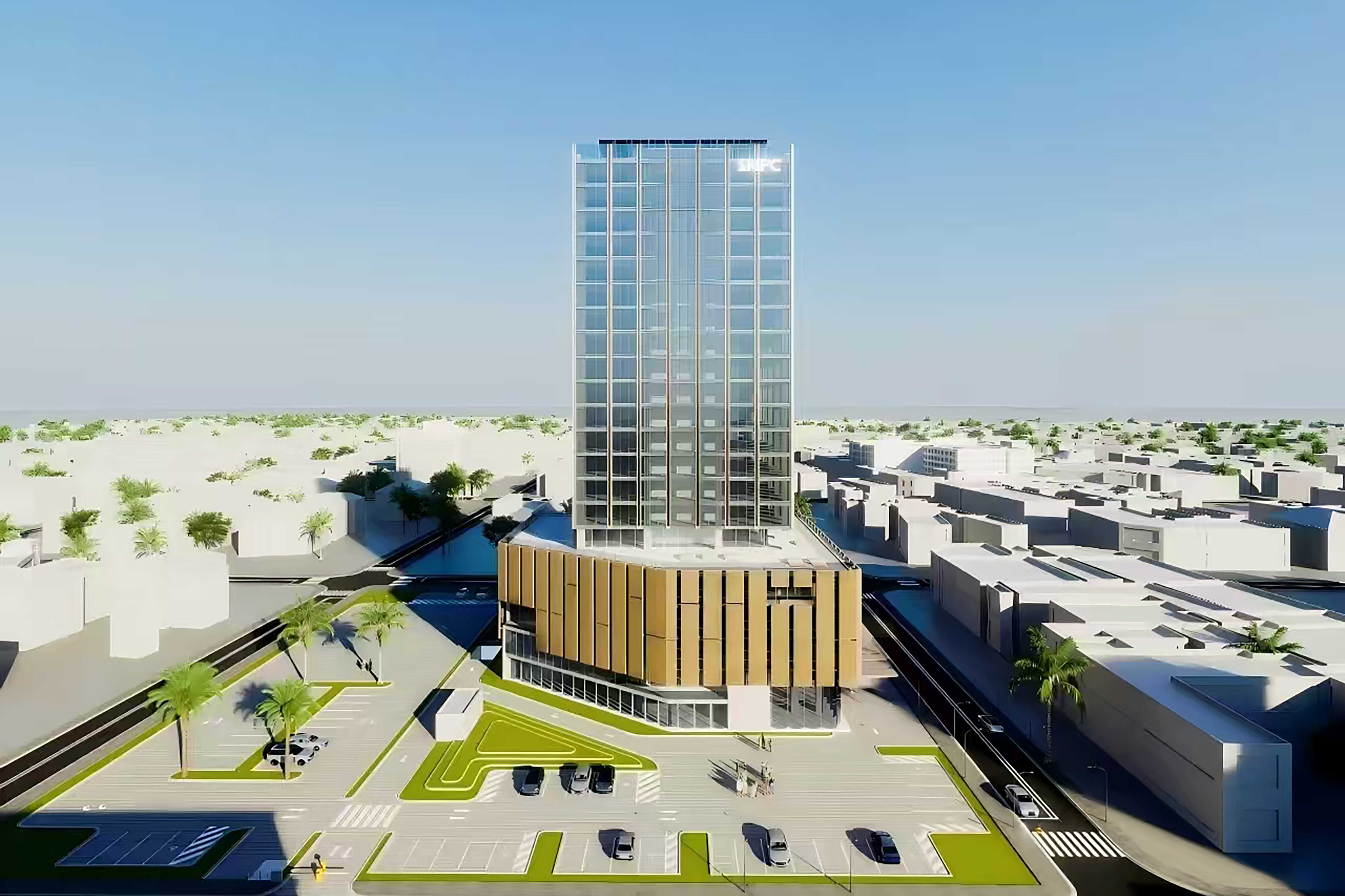 項(xiàng)目位于非洲剛果(布)經(jīng)濟(jì)中心黑角市,主要由主辦公樓、裙樓及禮堂組成,其中,主辦公樓地上21層,地下1層。作為該市的準(zhǔn)地標(biāo)性建筑,建成后將為剛果(布)國家石油公司提供現(xiàn)代化一流的辦公環(huán)境,滿足其舉辦各類大型會(huì)議、商務(wù)活動(dòng)需求。